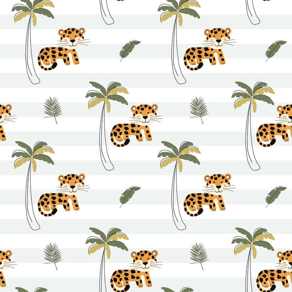 767466618 Seamless pattern with cute leopard. Childish jungle background. Watercolor baby leopard wallpaper.