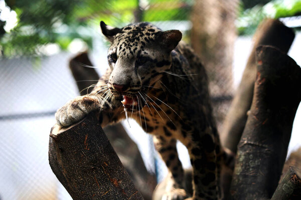 723677330 The Sumatran clouded leopard or Neofelis diardi diardi is a type of wild cat that lives on the island of Sumatra. This animal is nocturnal, meaning it actively hunts at night