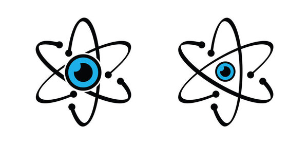 801200264 Eye, atomic whirl molecule icon. Science symbol. Nuclear energy, scientific research and molecular chemistry. Structure, formula, electron, proton, neutron, elementary particle the nucleus of an atom.