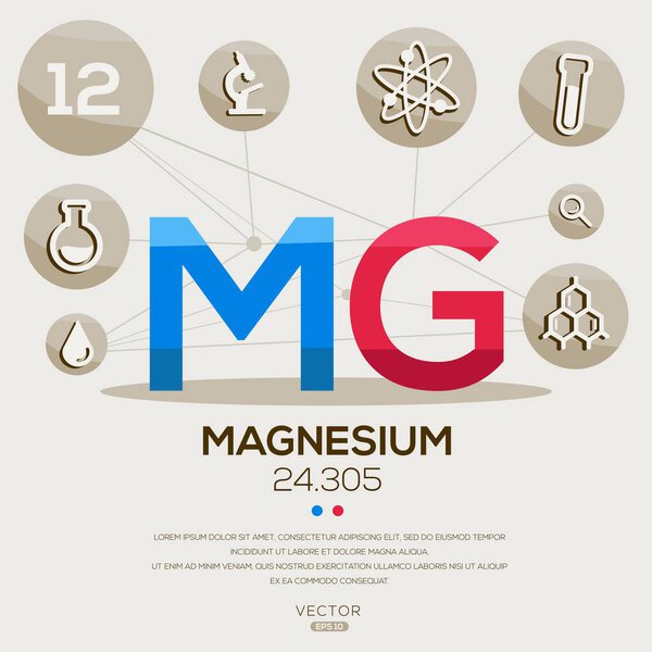 726189392 MG (Magnesium)The periodic table element, letters and icons, Vector illustration.
