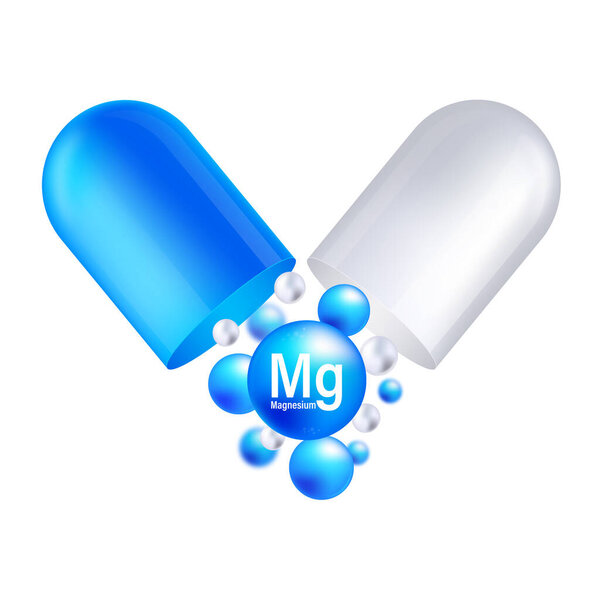 772714432 Magnesium text on sticky paper note with Medicine Capsule and Magnifying glass on yellow background