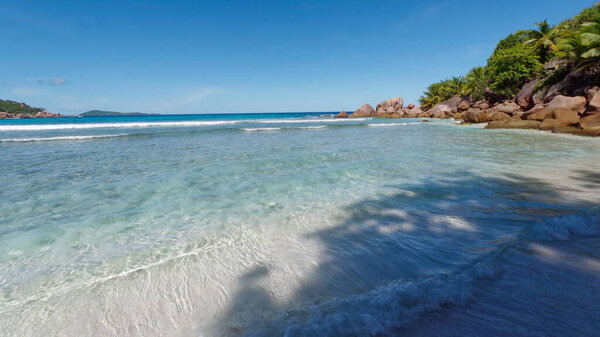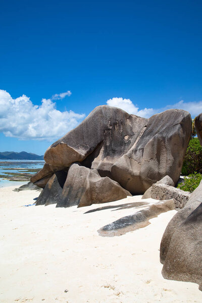 576569826 The beautiful view of Petite Anse beach. La Digue island, Seychelles, East Africa.