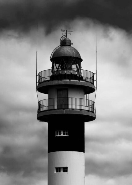 589263950 A grayscale of lighthouse tower on a cloudy day