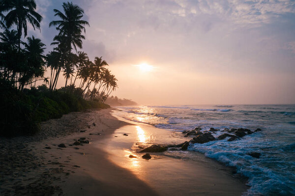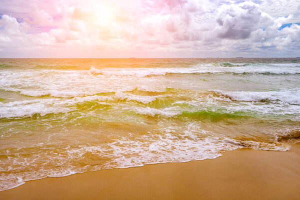 710048972 Serenity sea beach white sand at morning sunrise nature landscape
