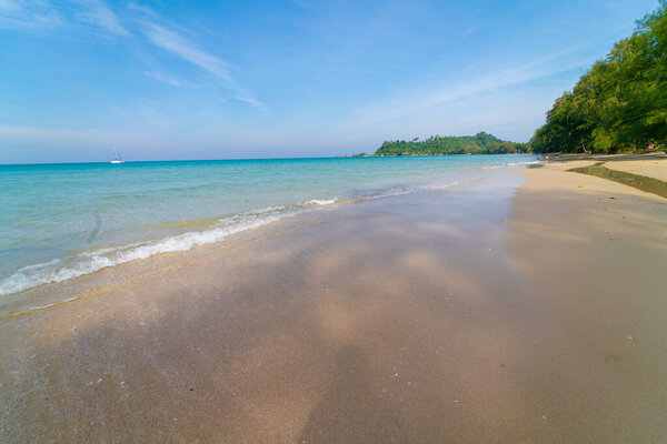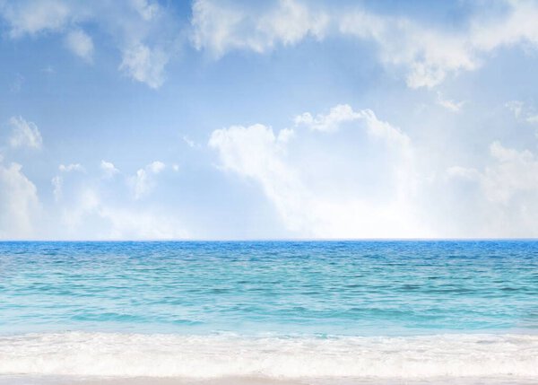 662572774 White sand sea beach wave blue sky with cloud summer vacation background