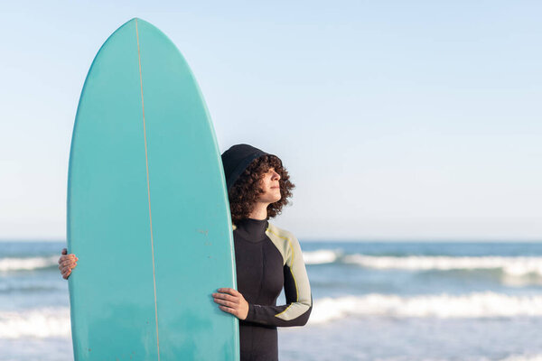 576540434 A beautiful shot of a man enjoying the perfect weather at the beach