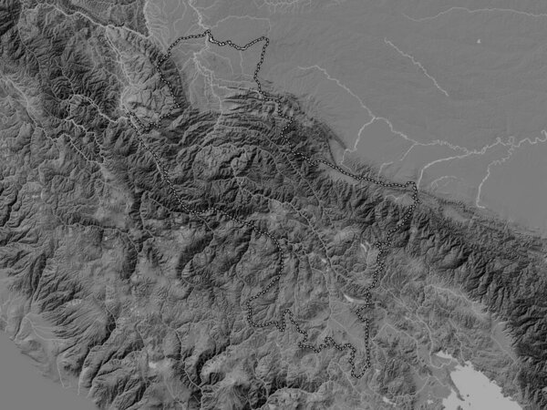 637578580 Cusco, region of Peru. Bilevel elevation map with lakes and rivers