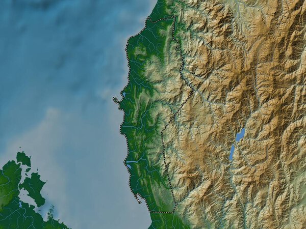 637587760 La Union, province of Philippines. Colored elevation map with lakes and rivers