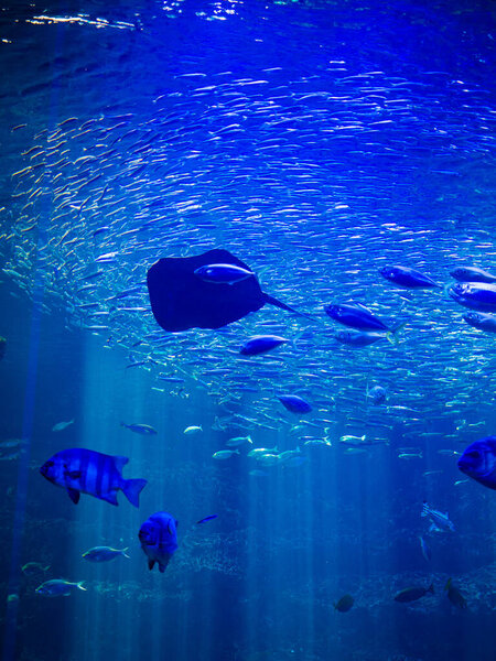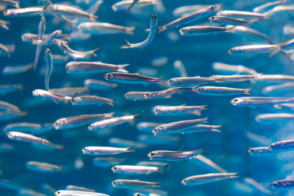 674735566 Schooling fish, Big Eye Scad fish in the shallows of the Caribbean Sea