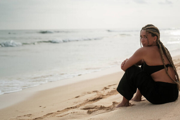 625934640 Thai women with a dress walk at the beach during sunset in Khao Lak Thailand.