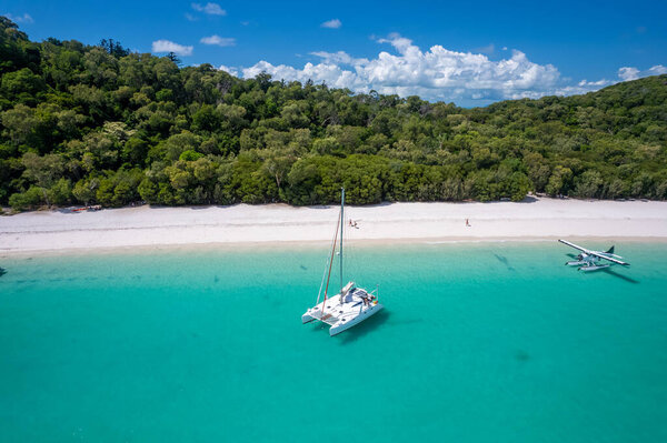 786787568 Yachts at Whitehaven Beach in the Whitsundays. High quality photo