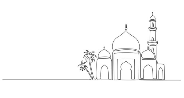853766366 Continuous line drawing of a mosque, line art vector illustration