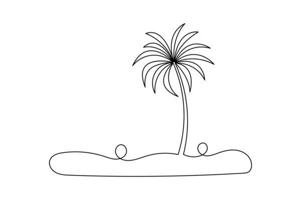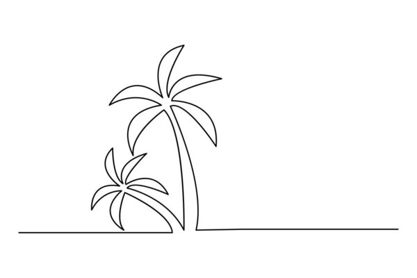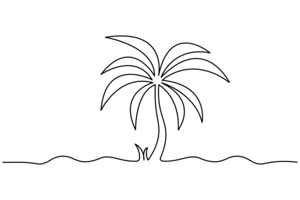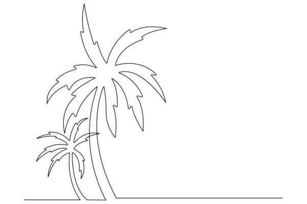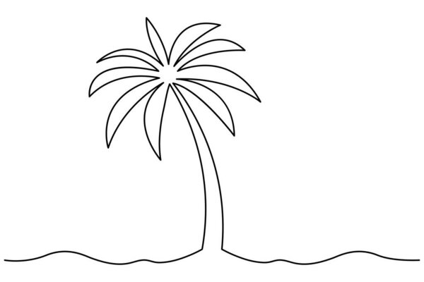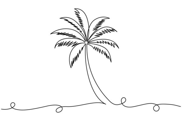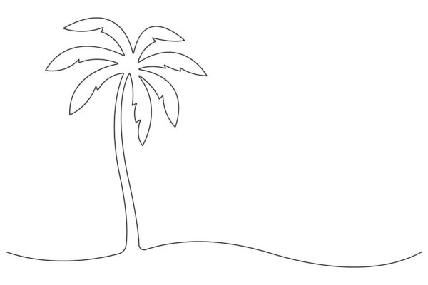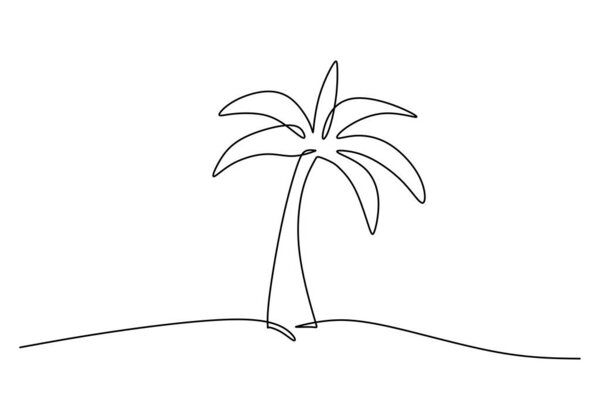 818504566 Palm tree continuous line. Hand drawn palm. Tropical landscape in minimalist style.