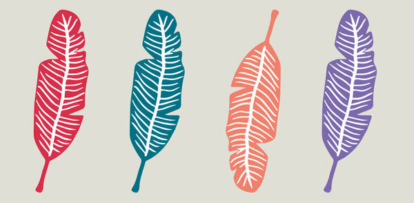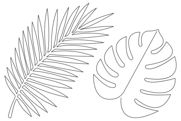 840567698 Vector silhouette drawing of banana palm leaves. Template for design. Line art botany collection.