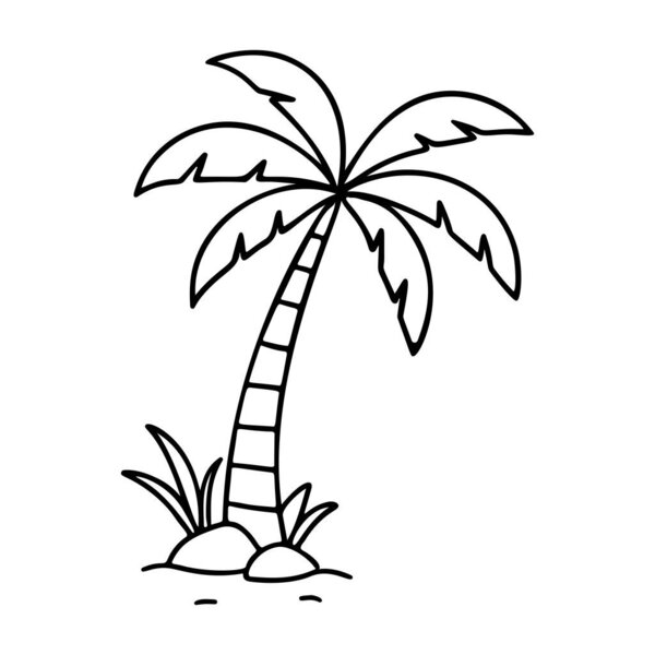 829600974 Palm Tree black and white icon clean line art, doodle style. Ideal for logo, tattoo, app, coloring book, web design, infographics, banner, poster, and more. Vector illustration