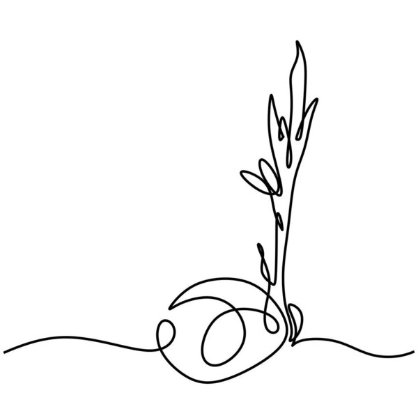 693828382 Sprout that grows in the ground, growing young plant, continuous line drawing, concept vector illustration