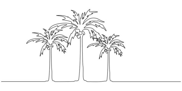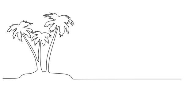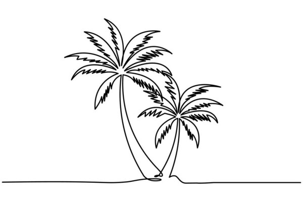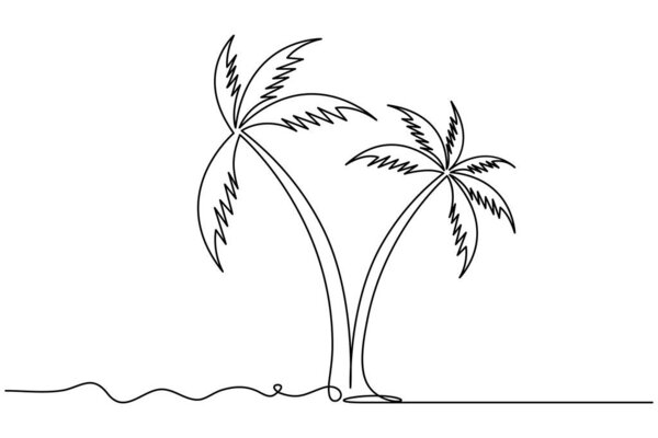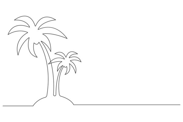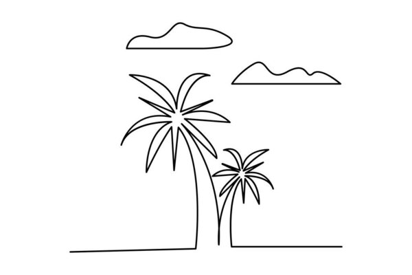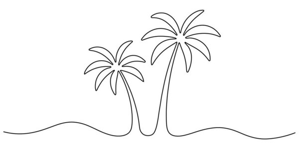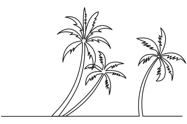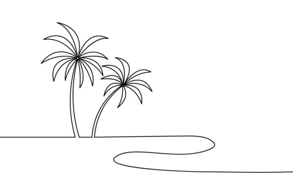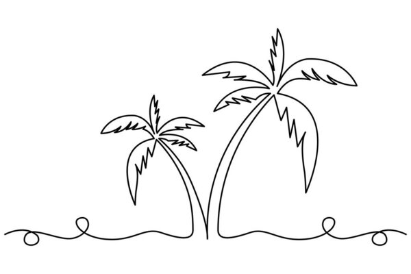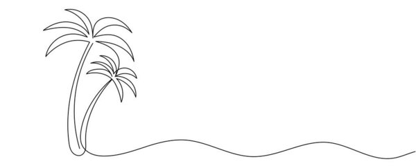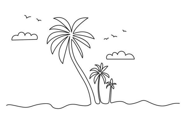 706489622 Palm coconut trees in the beach. Continuous one line art drawing. Sea view panorama vector illustration. Summer holiday concept.