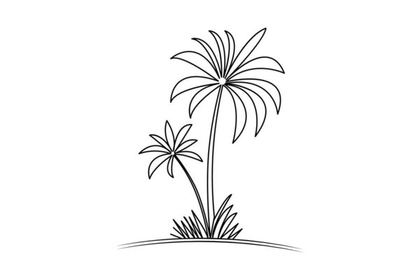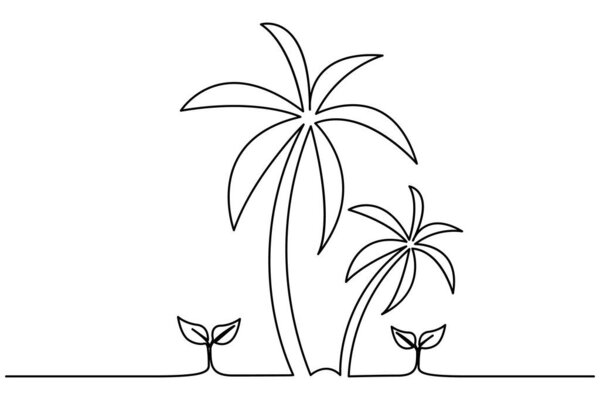 706488898 Young coconut tree continuous line drawing. Coconut buds plant. Vector illustration isolated. Minimalist design handdrawn.