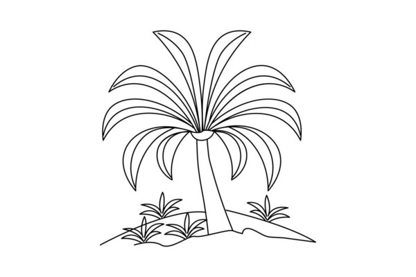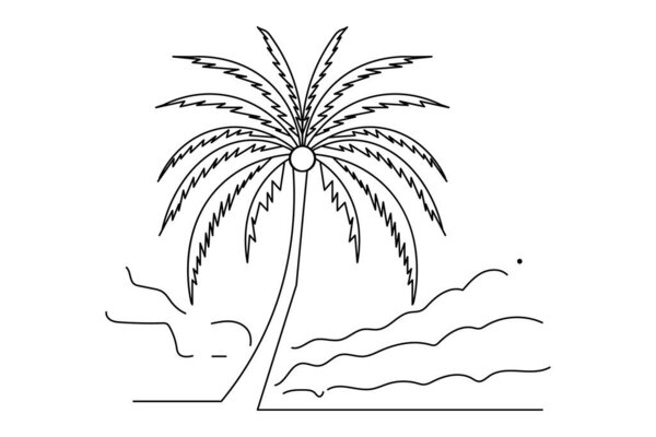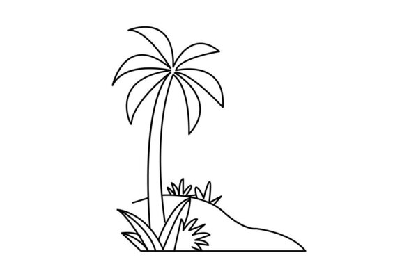 828325666 Simple black and white line drawing of a palm tree on a beach depicting vacation and relaxation
