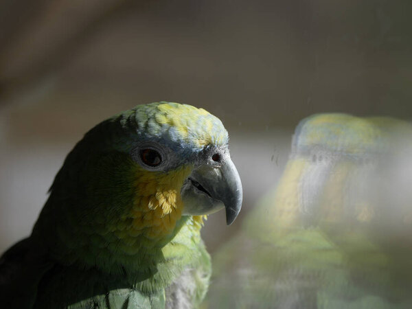 582012816 A closeup portrait shot of the orange-winged amazon parrot
