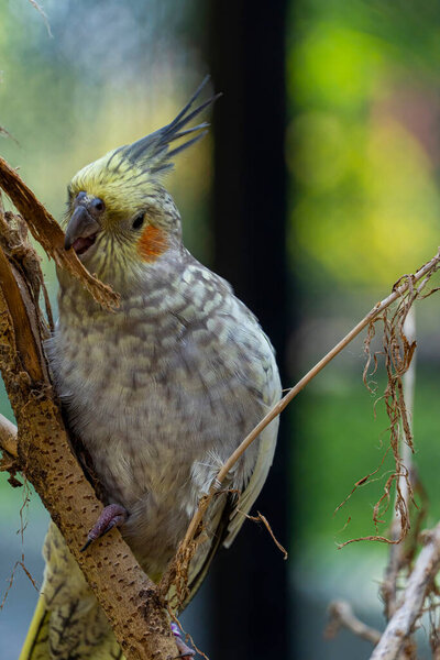 742395452 Portrait of Funny Yellow gray cockatiel parrot sitting at home