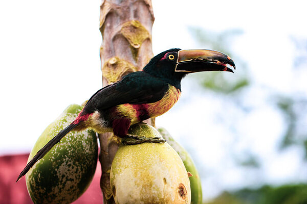 265486388 Macaw closeup (Ara ararauna), exotic bird