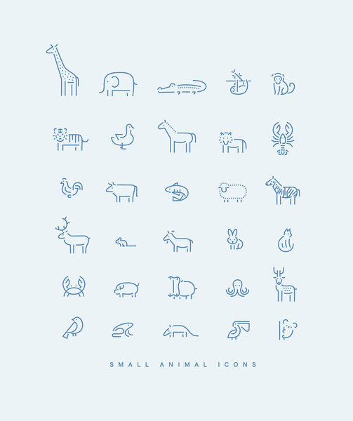 757622136 Animals collection giraffe, elephant, crocodile, sloth, tiger, cheetah, bird, horse, lion, lobster, parrot, bull, fish, sheep, zebra, deer, squirrel, goat drawing on light blue background