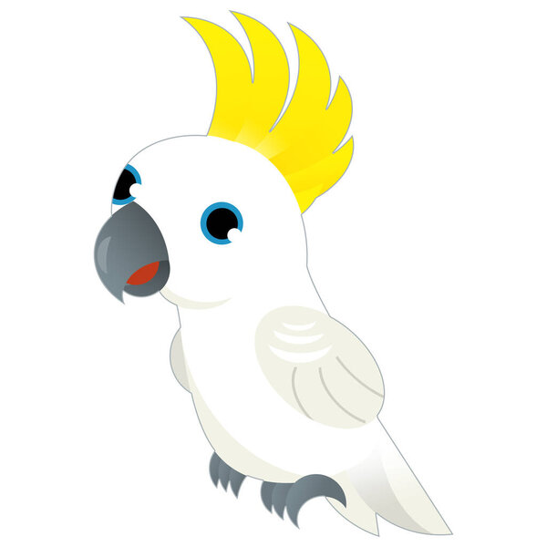 674220206 Cartoon animal bird white parrot on white background illustration for kids