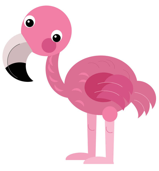 674222026 Cartoon animal happy tropical bird flamingo on white background illustration for kids