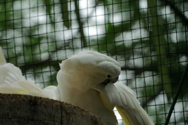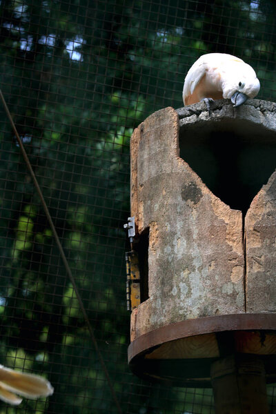 674361396 Pink cacatua bird in Bali zoo portrait.