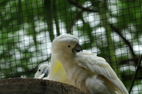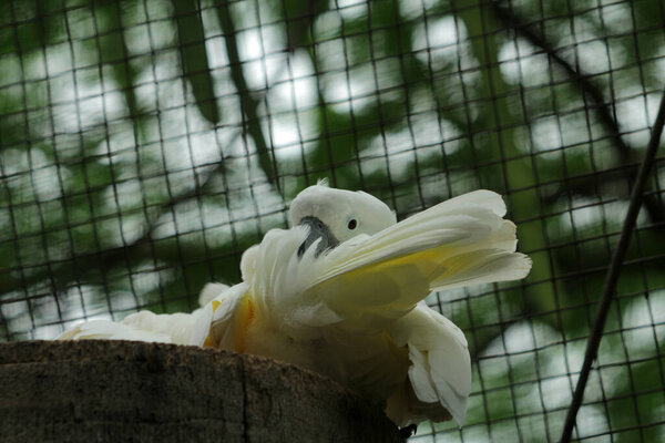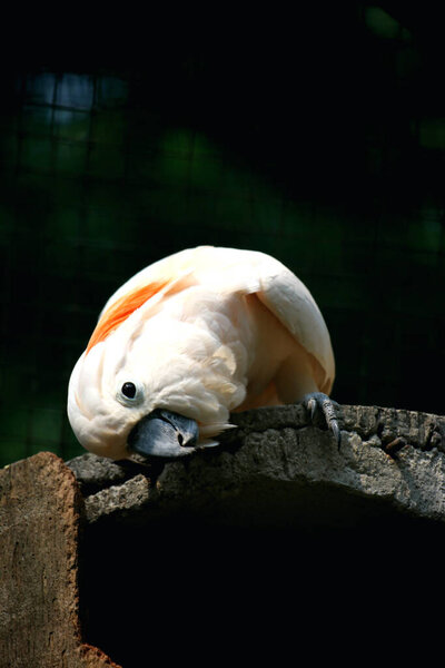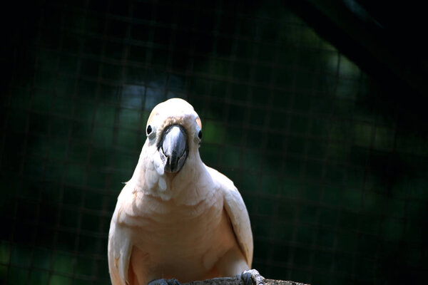 719500032 The Moluccan Cockatoo or its scientific name Cacatua moluccensis, has white feathers mixed with pink. On his head there is a large pink crest that can be erected.