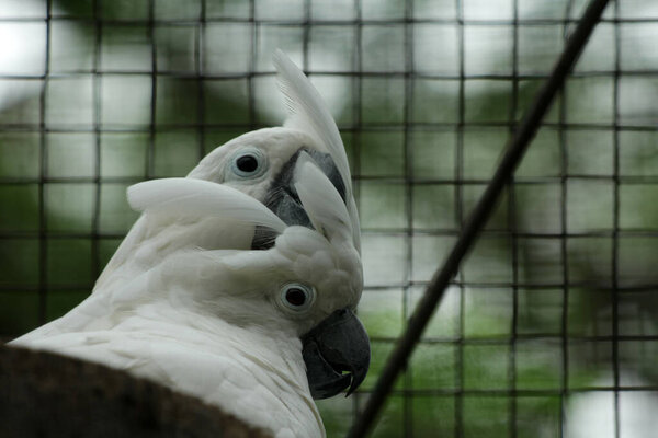 827433614 The white cockatoo AKA Cacatua alba, also known as the umbrella cockatoo, is a medium-sized all-white cockatoo endemic to tropical rainforest on islands of Indonesia. When surprised, it extends a large and striking head crest.