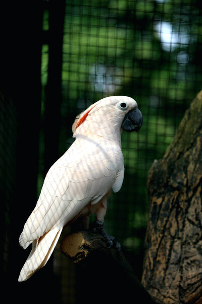 719500000 The Moluccan Cockatoo or its scientific name Cacatua moluccensis, has white feathers mixed with pink. On his head there is a large pink crest that can be erected.
