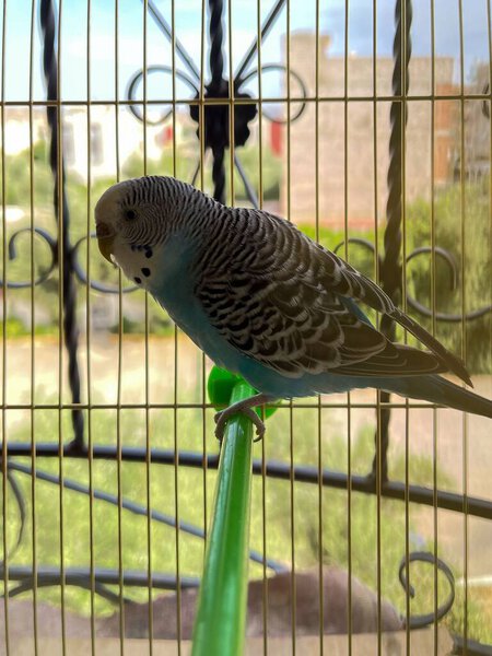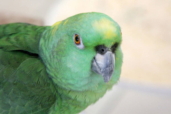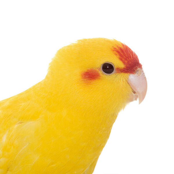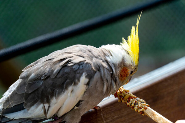 742394896 Portrait of Funny Yellow gray cockatiel parrot sitting at home