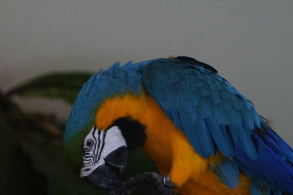 265486352 Macaw closeup (Ara ararauna), exotic bird