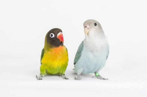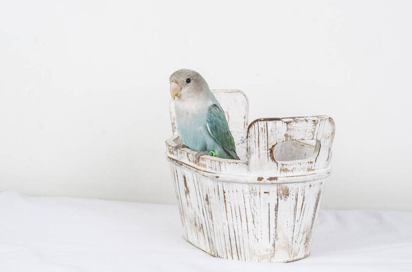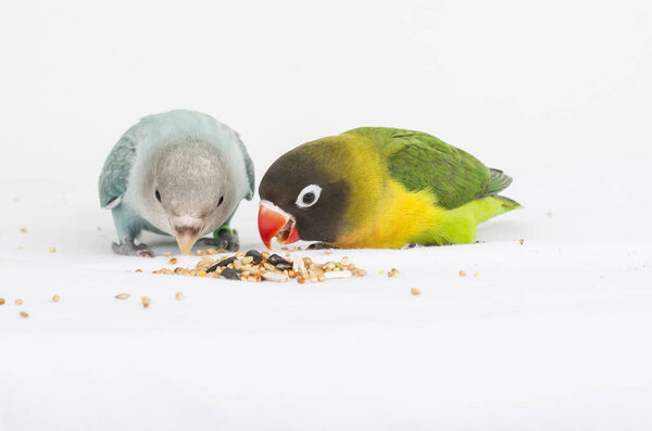 686142800 Exotic pet, cute Forpus parrot bird on woman hand with millet spray feed, Forpus parrot is new famous tiny bird pet in Thailand