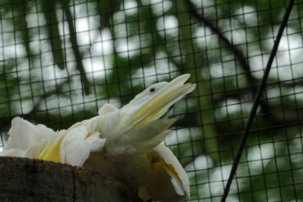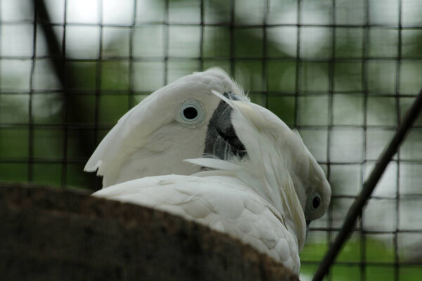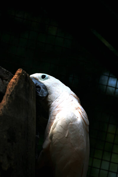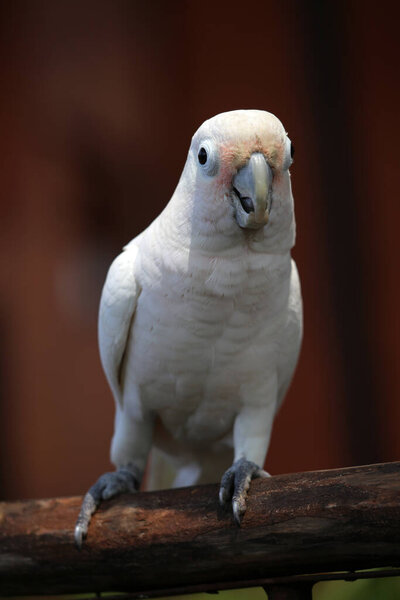 674361396 Pink cacatua bird in Bali zoo portrait.