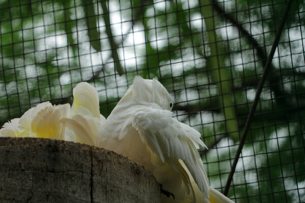 719500002 The Moluccan Cockatoo or its scientific name Cacatua moluccensis, has white feathers mixed with pink. On his head there is a large pink crest that can be erected.