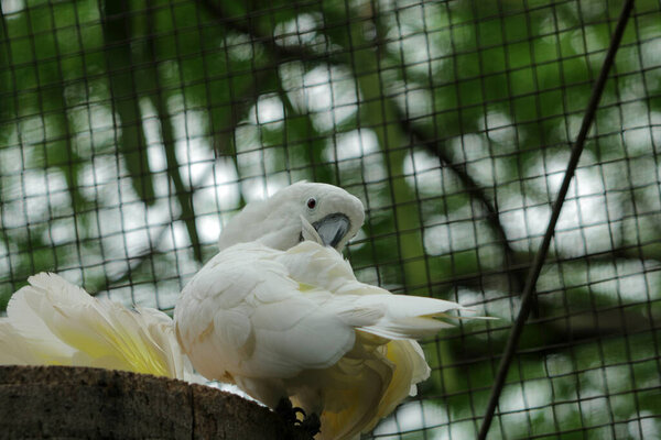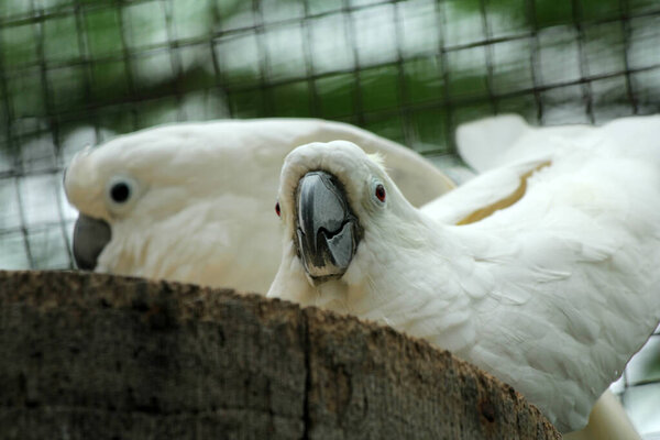 719499990 The Moluccan Cockatoo or its scientific name Cacatua moluccensis, has white feathers mixed with pink. On his head there is a large pink crest that can be erected.