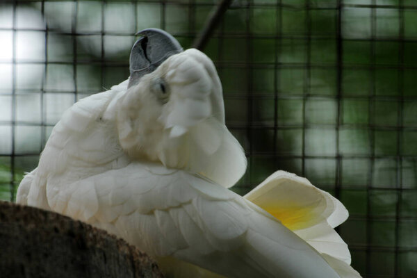 714607564 Zoomed-in shot of the Indonesian Tanimbar corella, Cacatua goffiniana, from the Tanimbar islands