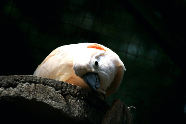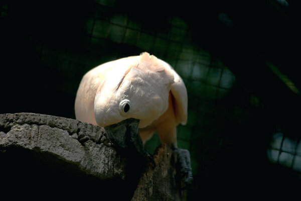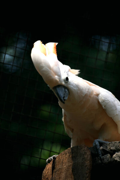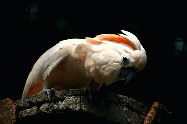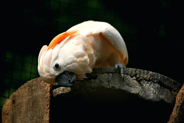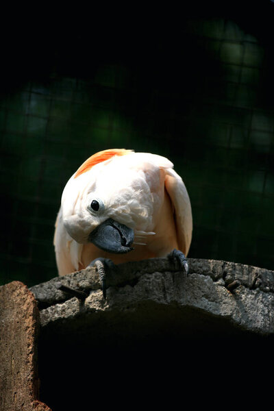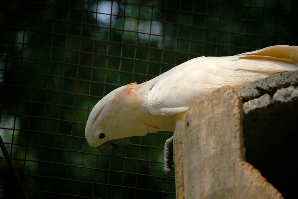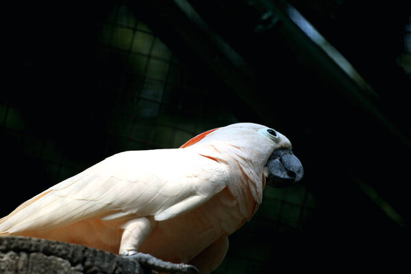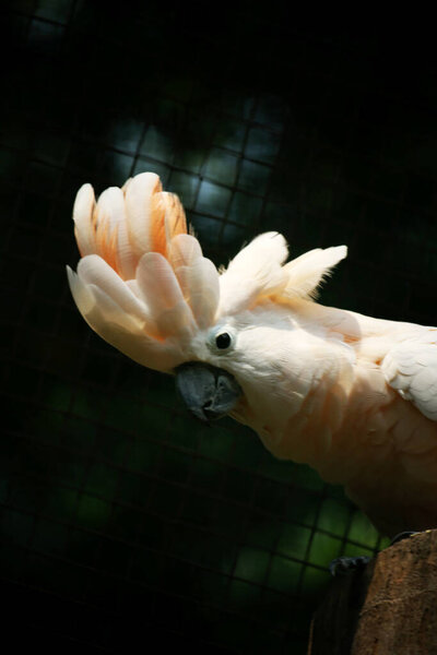 719499600 The Moluccan Cockatoo or its scientific name Cacatua moluccensis, has white feathers mixed with pink. On his head there is a large pink crest that can be erected.