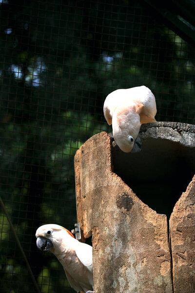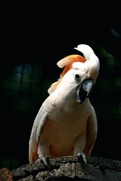 719500190 The Moluccan Cockatoo or its scientific name Cacatua moluccensis, has white feathers mixed with pink. On his head there is a large pink crest that can be erected.