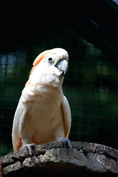 719500100 The Moluccan Cockatoo or its scientific name Cacatua moluccensis, has white feathers mixed with pink. On his head there is a large pink crest that can be erected.
