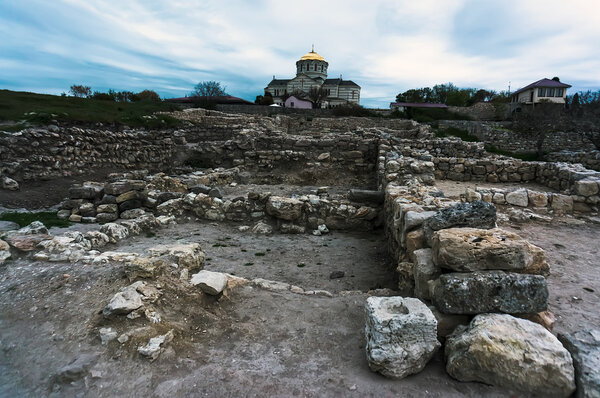 808779248 Basilica excavation in evening Chersonesos - ancient town (Sevastopol, Crimea, Ukraine)