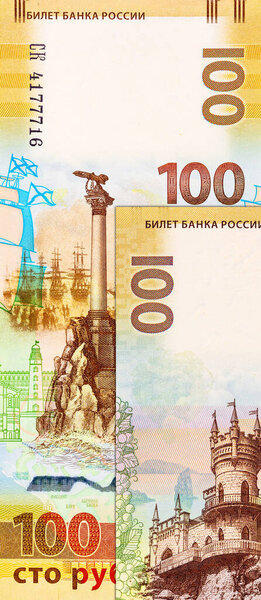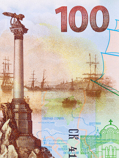 809194916 100 Rubles banknote of Russia with the image of the monument to the lost ships in Sevastopol. Crimea occupied by Russia. Paper money of Russia.