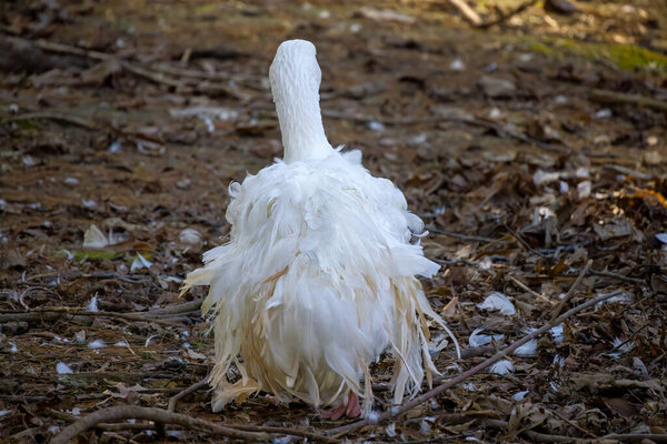 623401440 White Sebastopol goose. This domestic geese cannot fly due to the curliness of their feathers