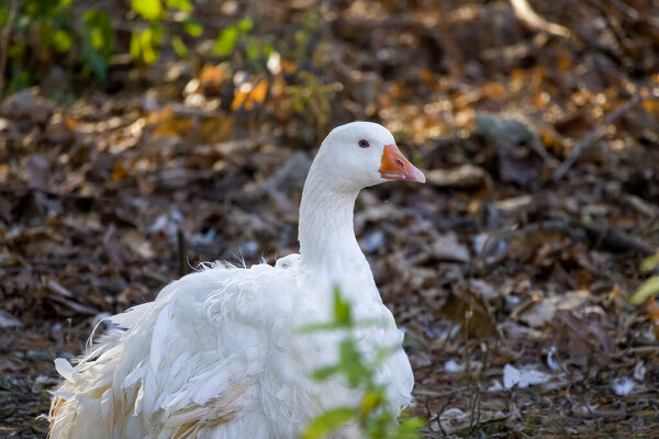 623401238 White Sebastopol goose. This domestic geese cannot fly due to the curliness of their feathers