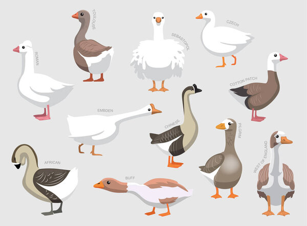 635834272 Various Domestic Goose Breeds With Names Set Various Kind Identify Cartoon Vector