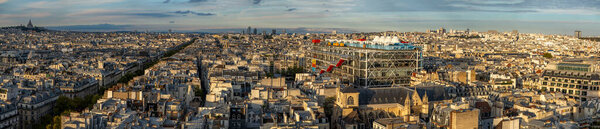 842334560 Paris, France - 09 27 2025: Panoramic view of The Pompidou Center and North Paris neighborhood of Paris at sunset