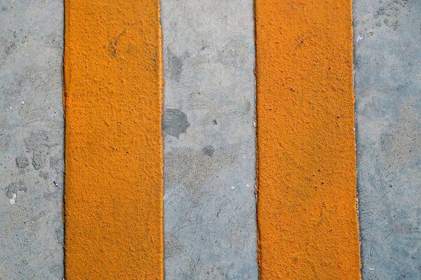 674091836 A orange both line on cement floor, texture and background design.